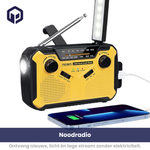- Multifunctional power supply: Built-in battery, hand crank, and solar panel for continuous power.