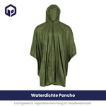 Deze multifunctionele poncho is gemaakt van stevig waterdicht vinyl en is ideaal als snelle bescherming tegen regen of als nood-grondzeil. Lichtgewicht en compact – perfect voor je hike, noodpakket of kampeeruitrusting.